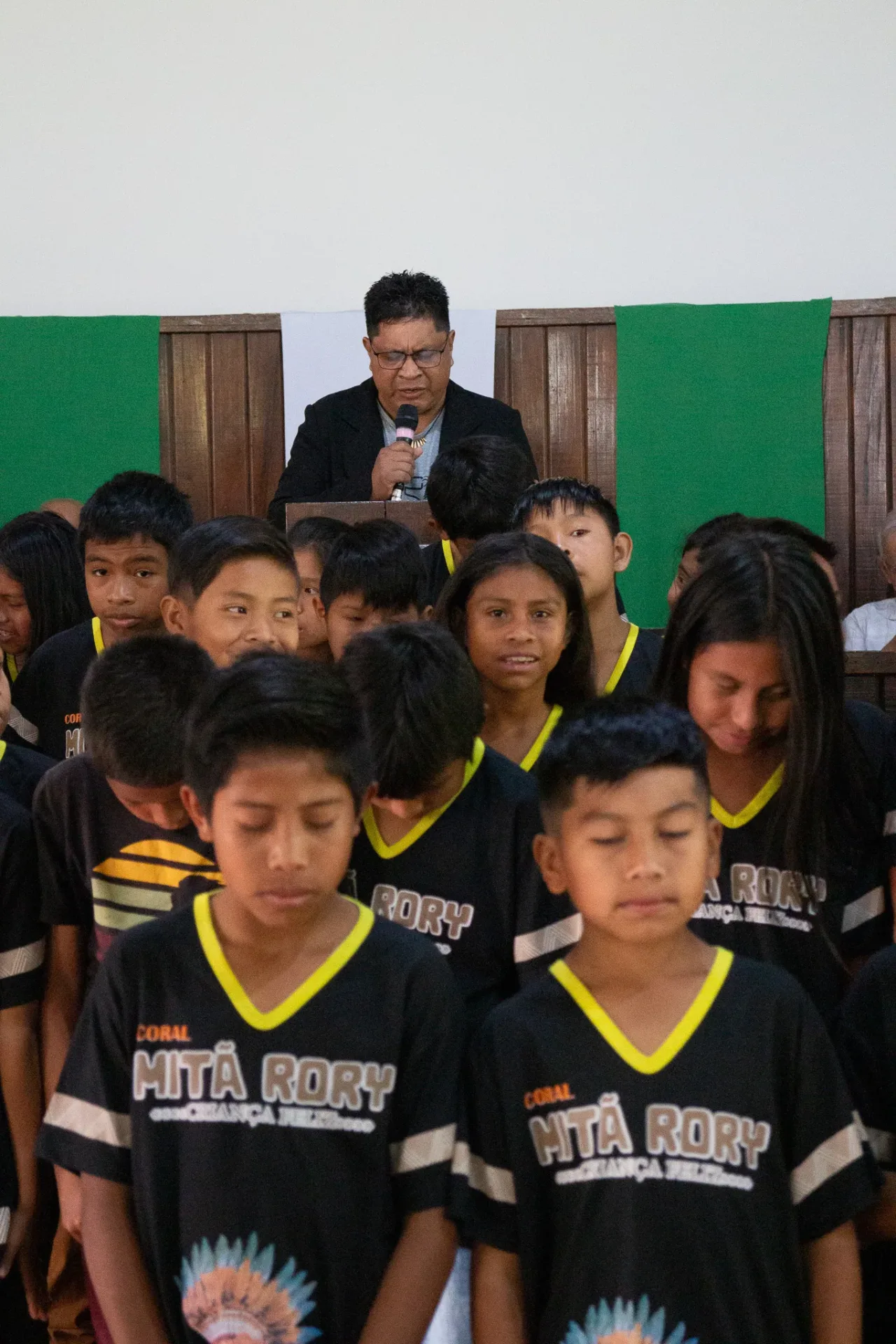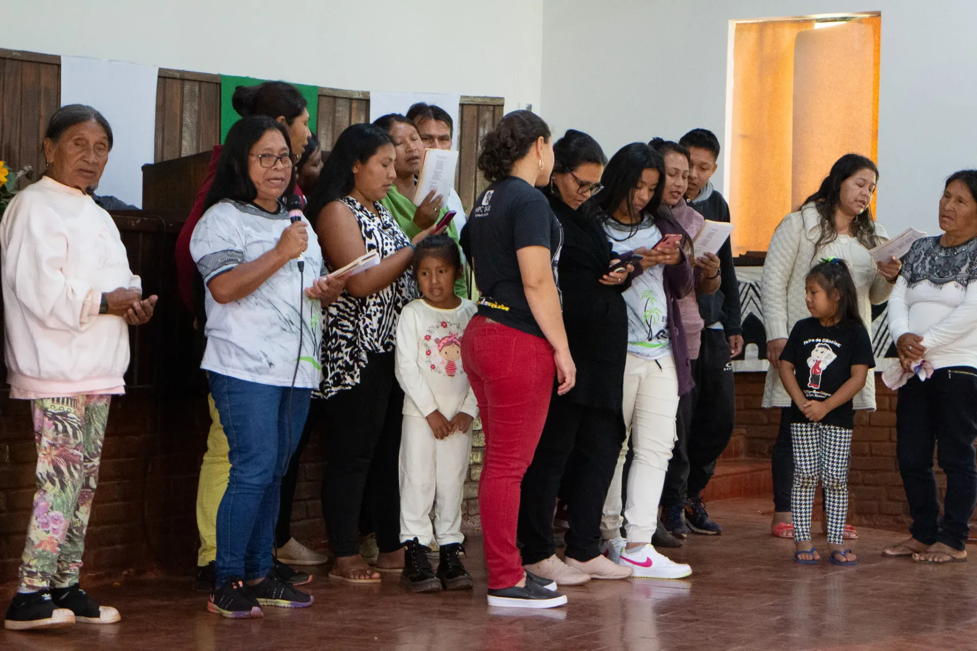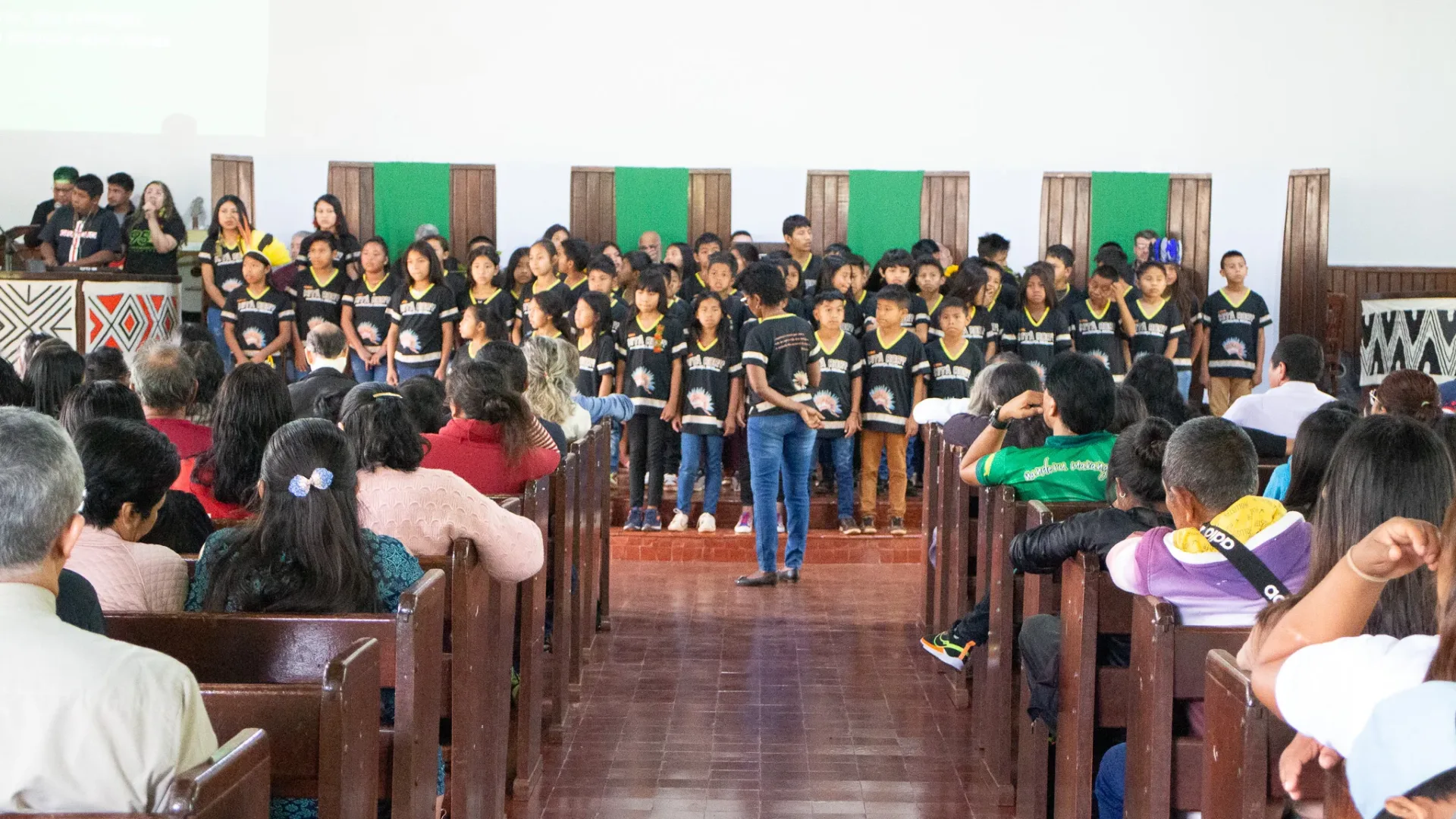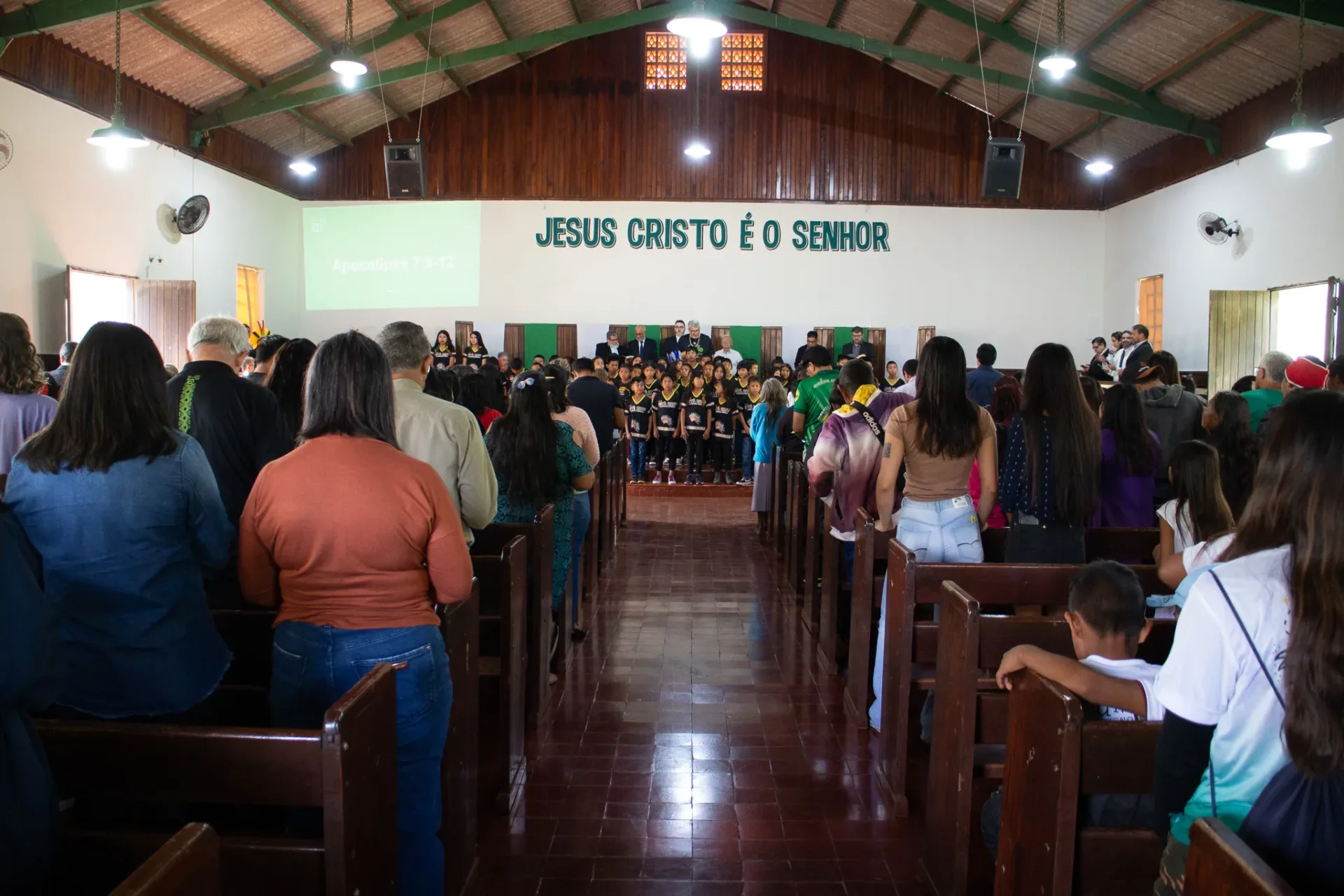 Durante toda a celebração, cânticos ressoaram na voz dos irmãos da igreja indígena e no Coral da Escola Mitã Rory de Amambai, que louvaram tanto em português quanto em Guarani Kaiowá.