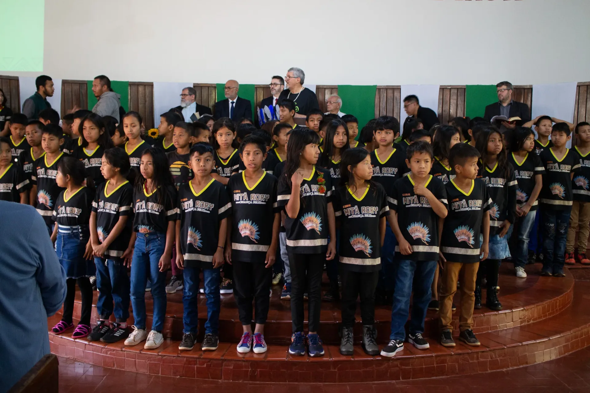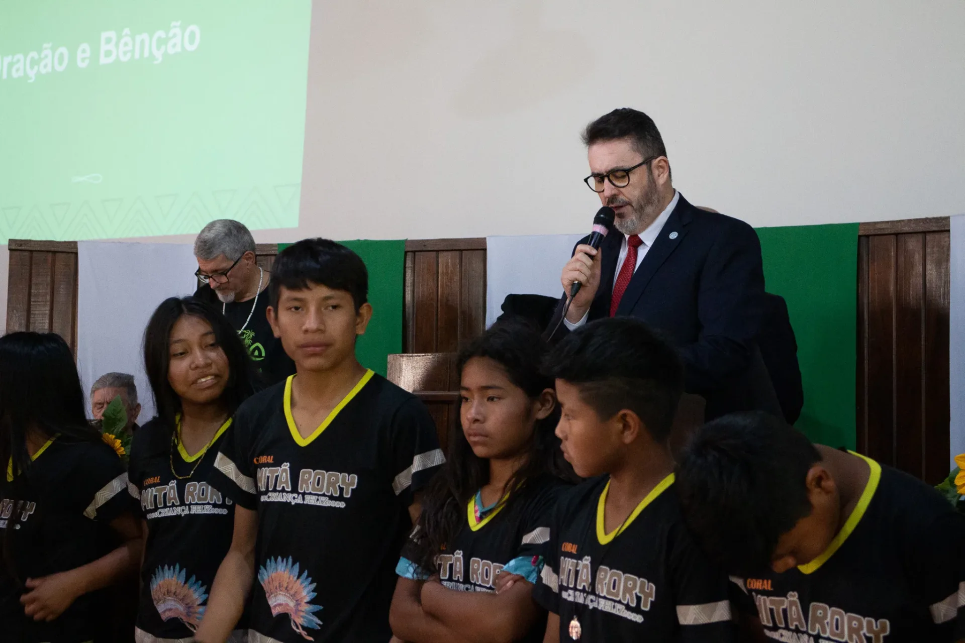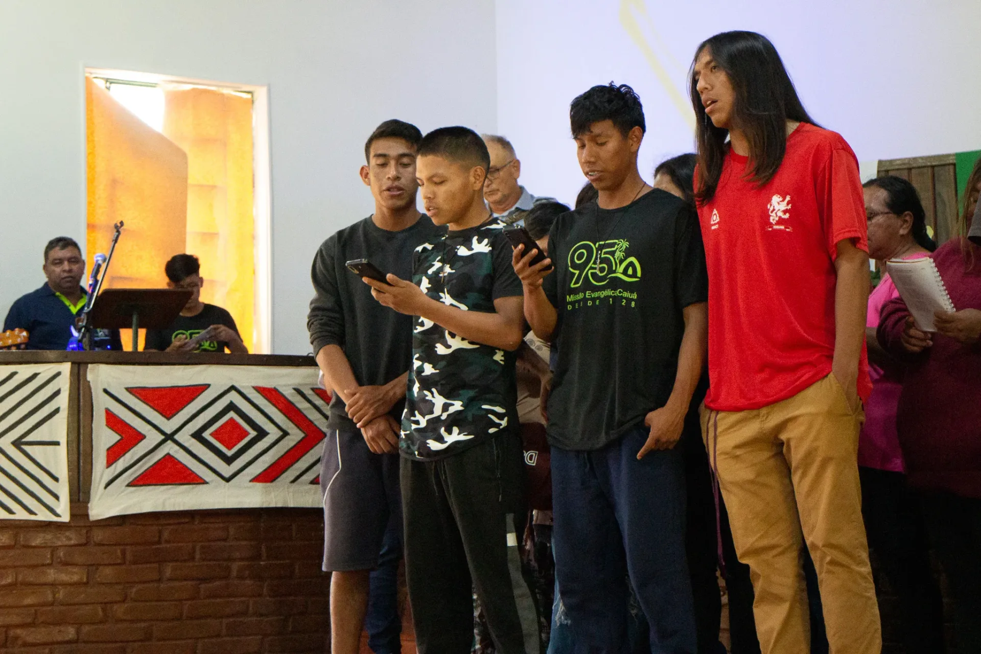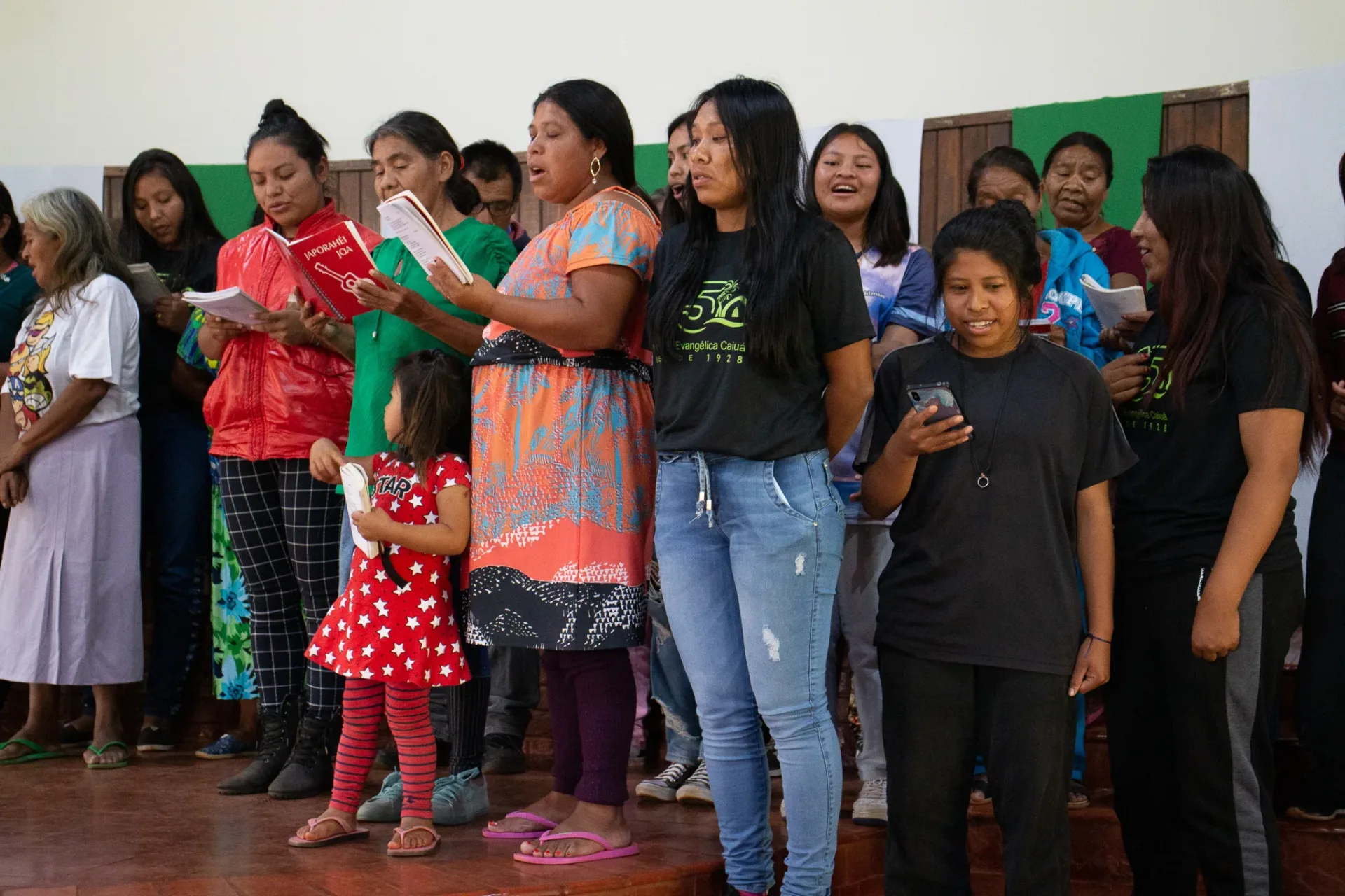 Durante toda a celebração, cânticos ressoaram na voz dos irmãos da igreja indígena e no Coral da Escola Mitã Rory de Amambai, que louvaram tanto em português quanto em Guarani Kaiowá.