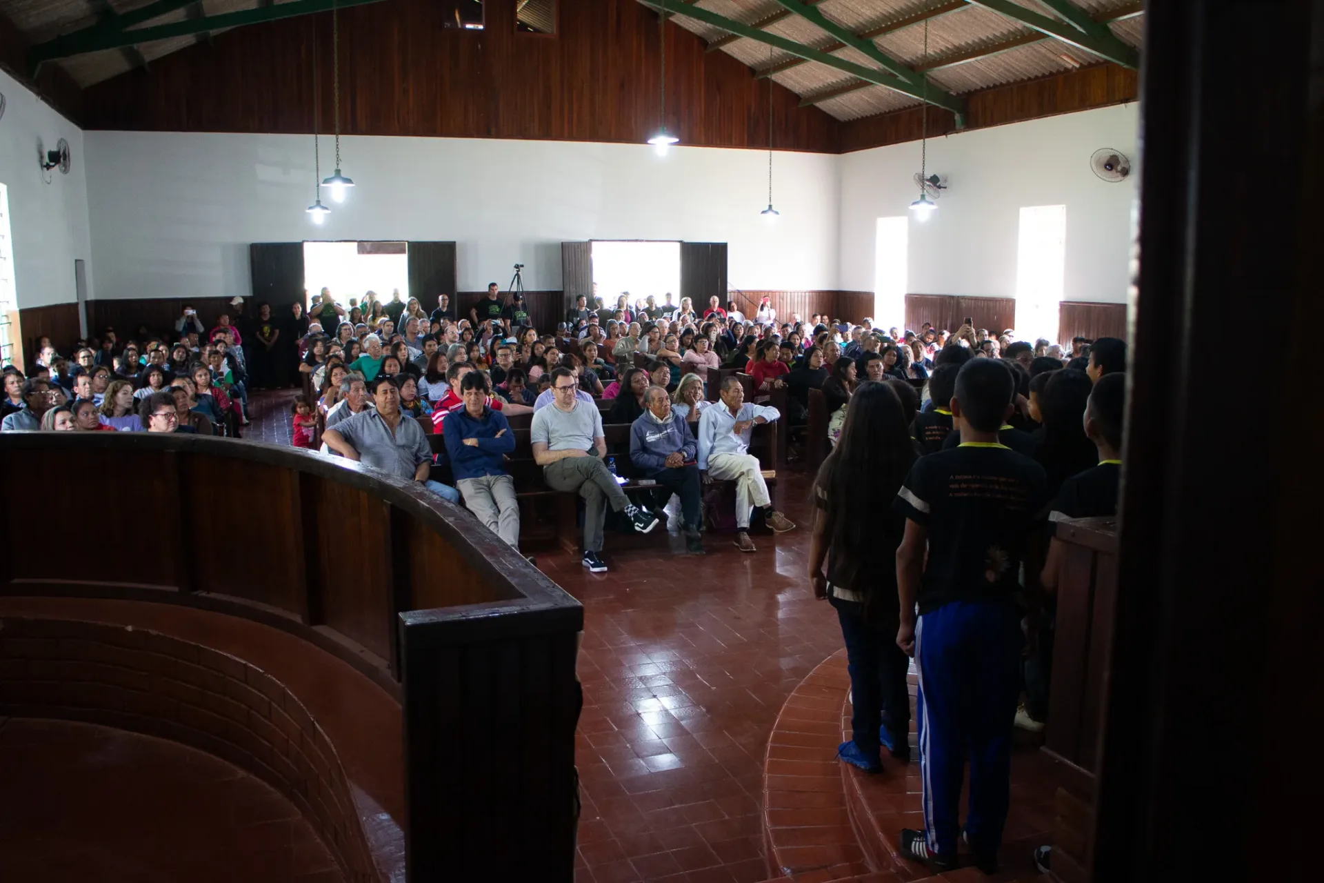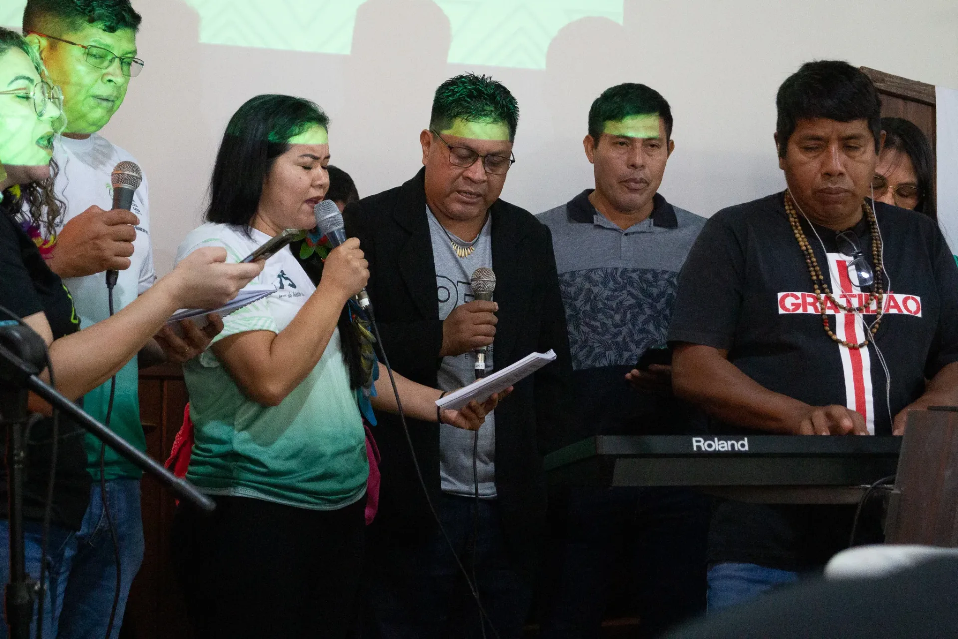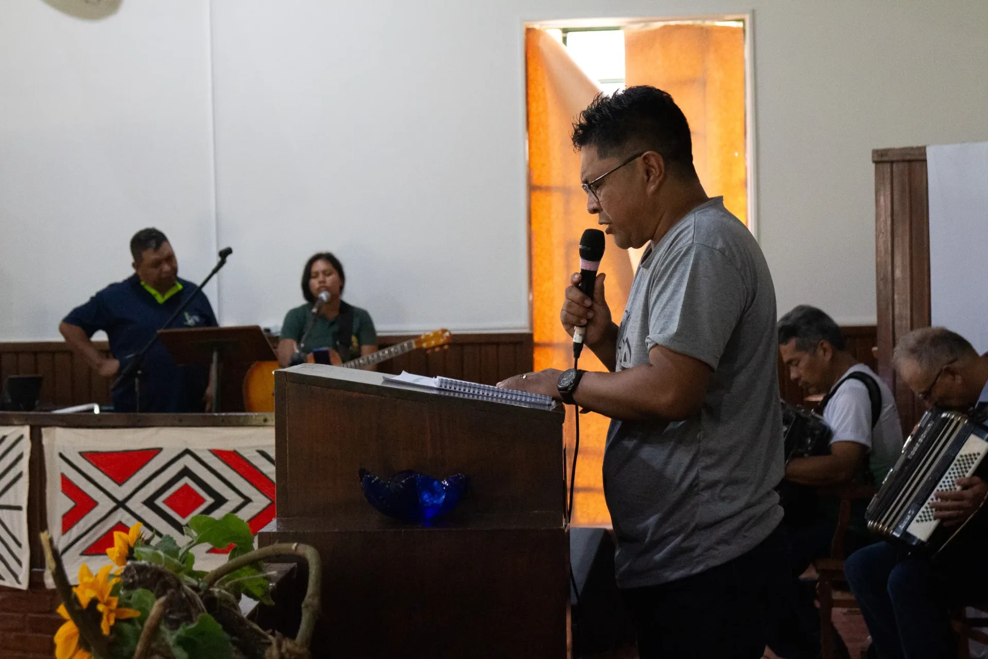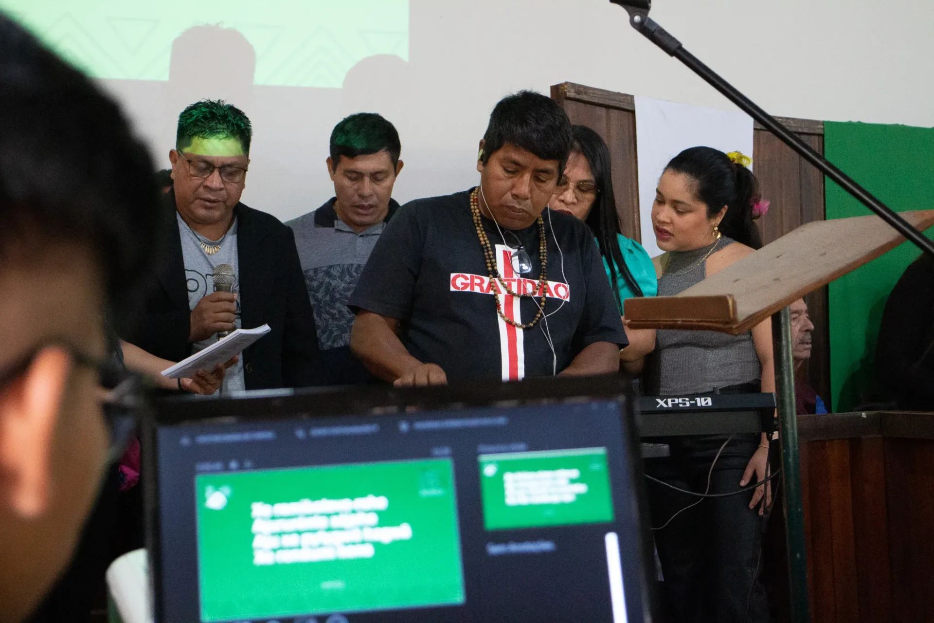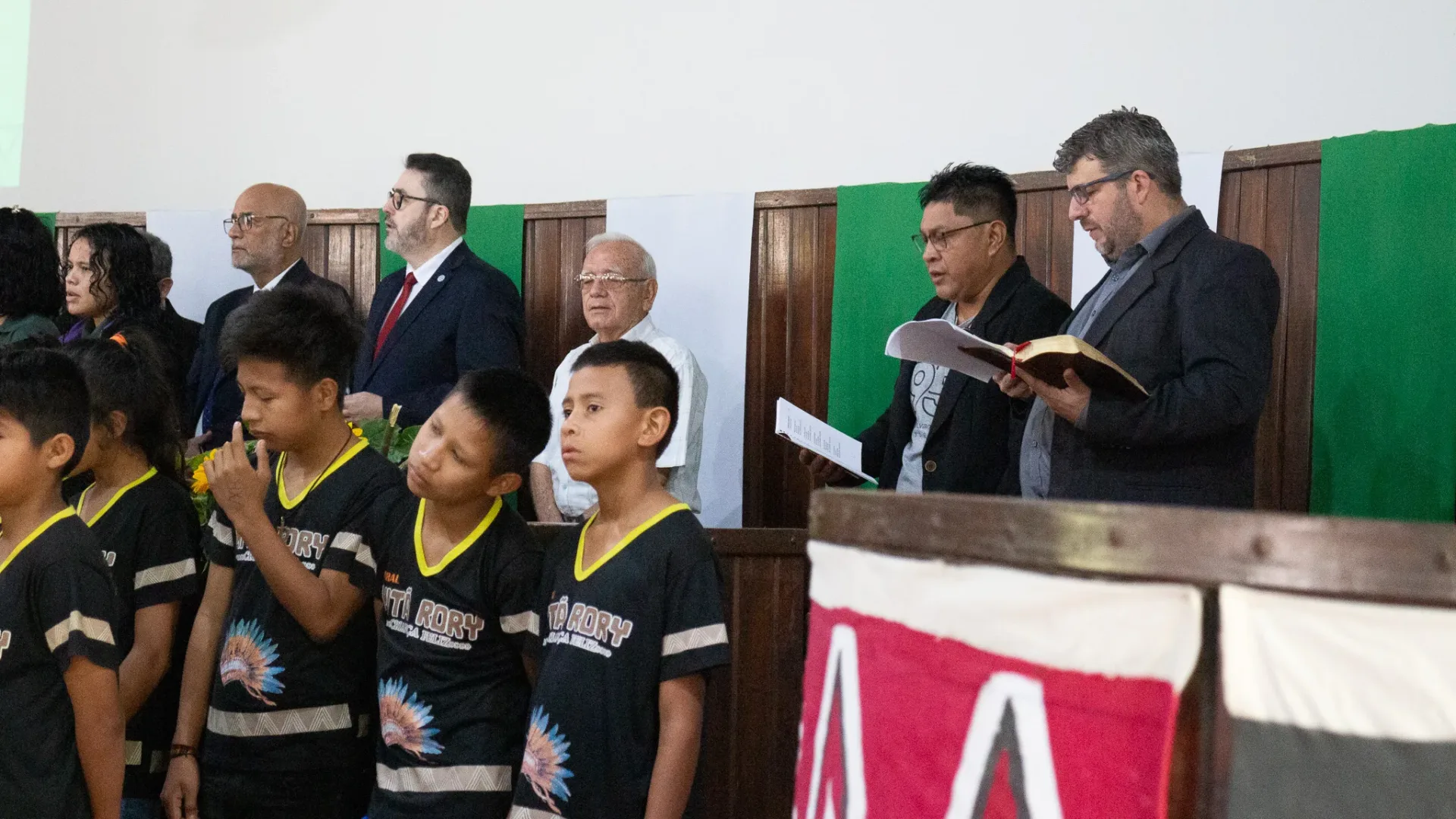 Durante toda a celebração, cânticos ressoaram na voz dos irmãos da igreja indígena e no Coral da Escola Mitã Rory de Amambai, que louvaram tanto em português quanto em Guarani Kaiowá.