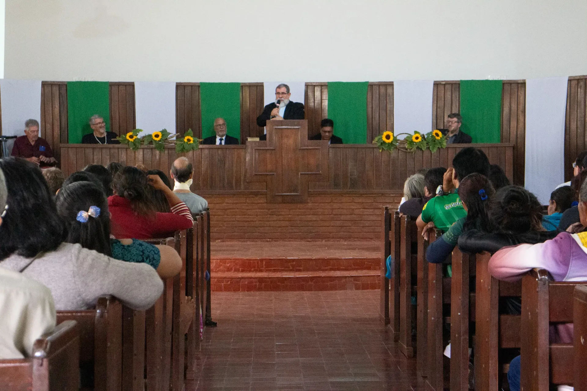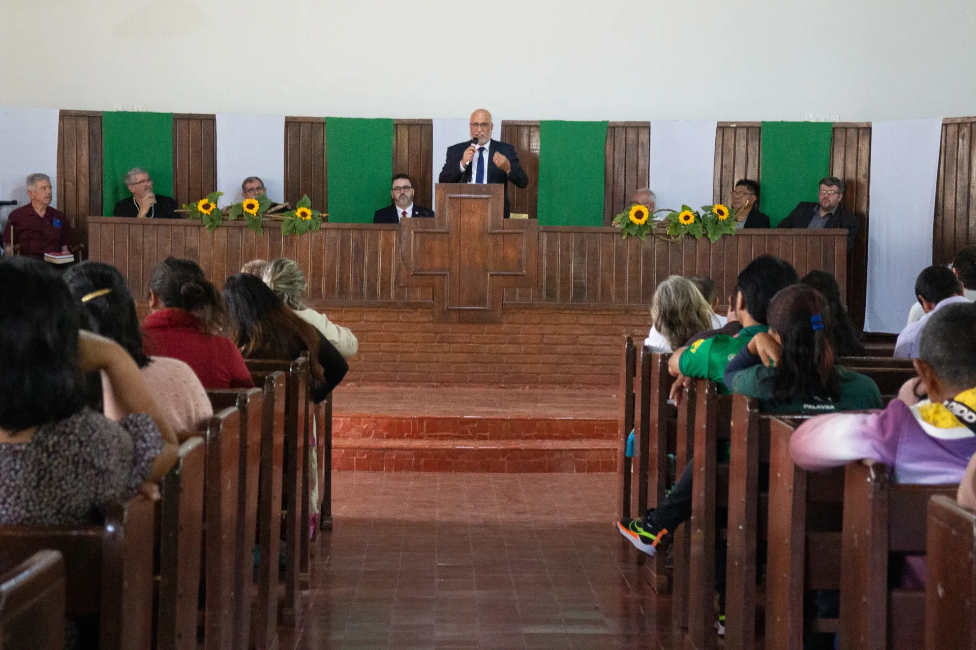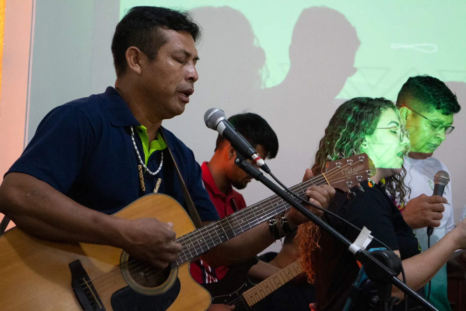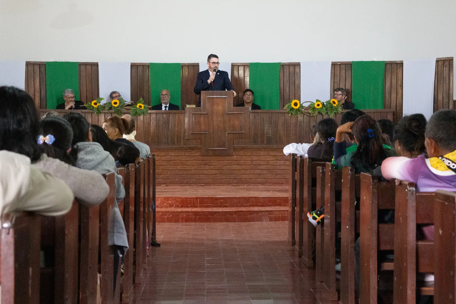 Durante toda a celebração, cânticos ressoaram na voz dos irmãos da igreja indígena e no Coral da Escola Mitã Rory de Amambai, que louvaram tanto em português quanto em Guarani Kaiowá.