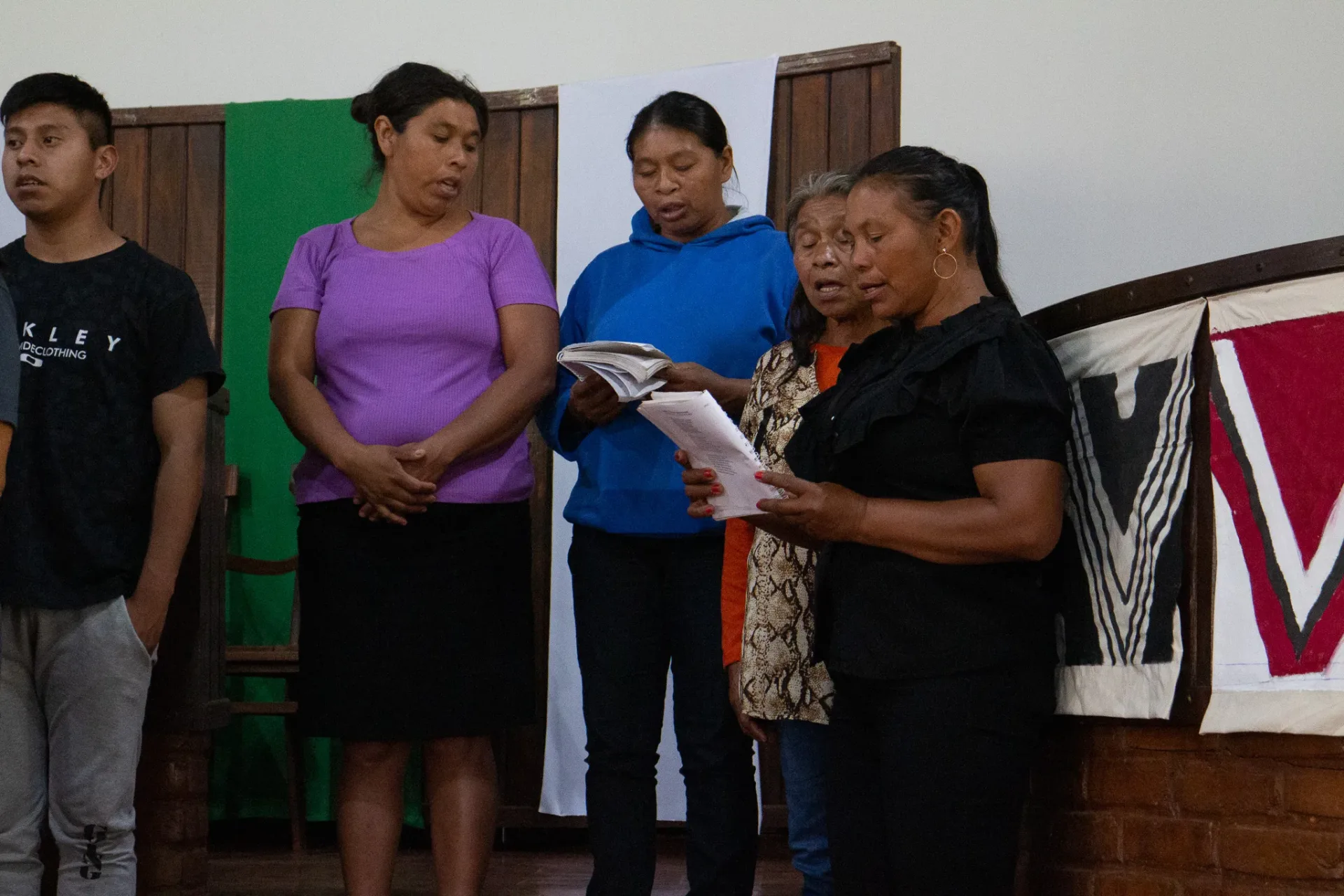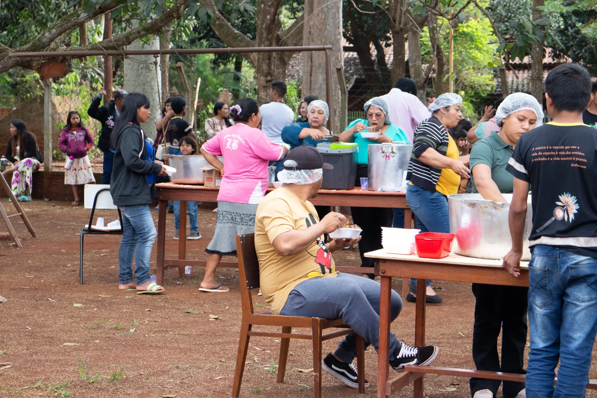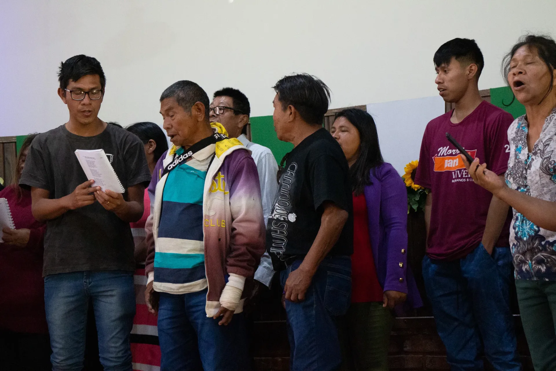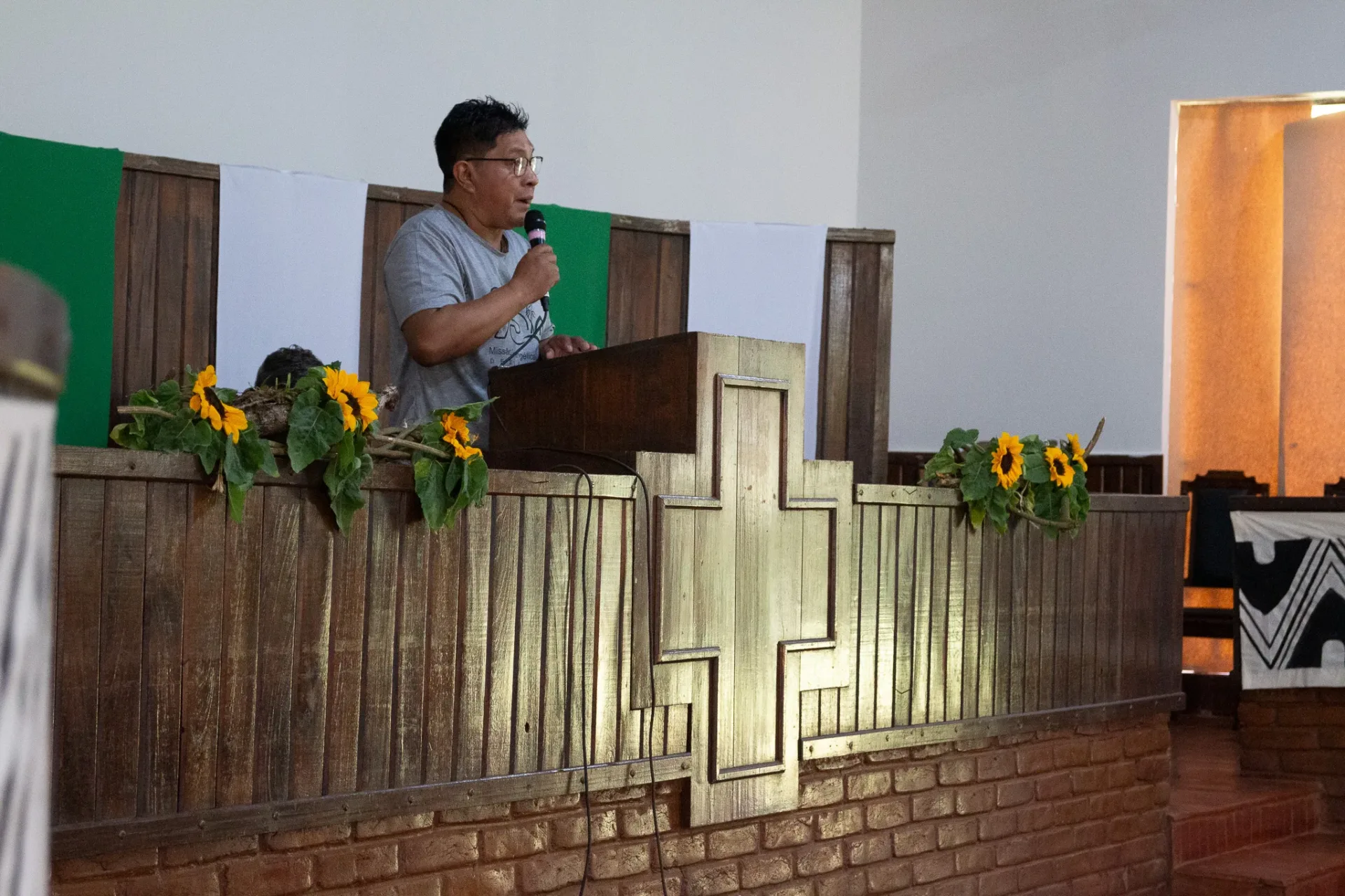 Durante toda a celebração, cânticos ressoaram na voz dos irmãos da igreja indígena e no Coral da Escola Mitã Rory de Amambai, que louvaram tanto em português quanto em Guarani Kaiowá.