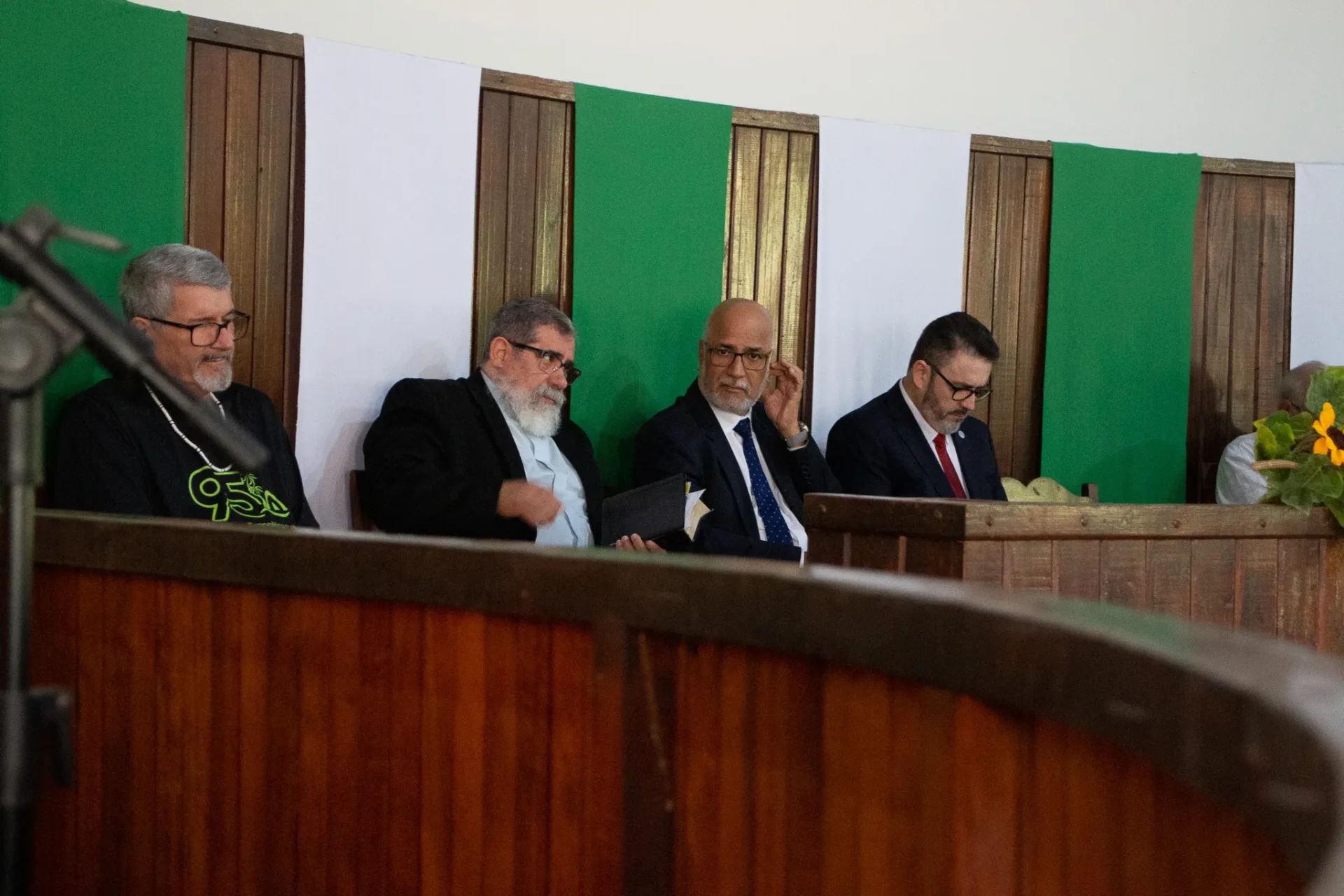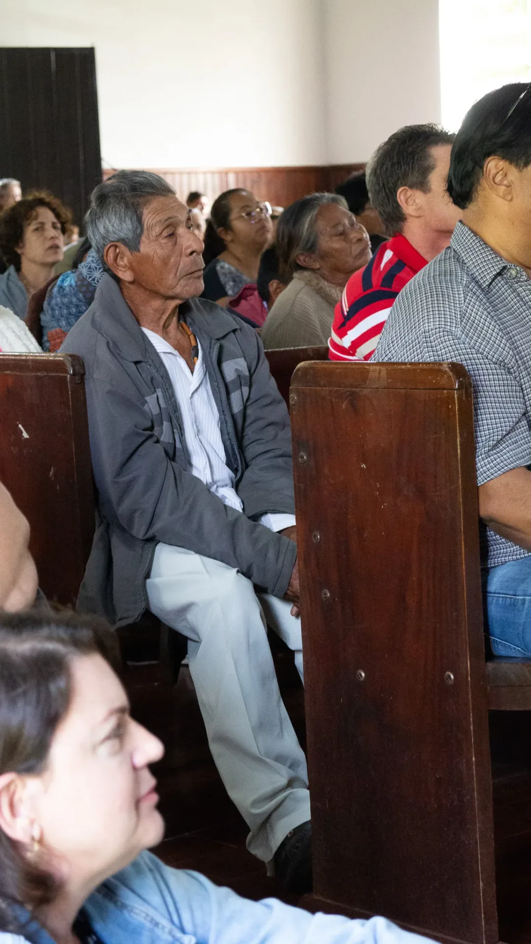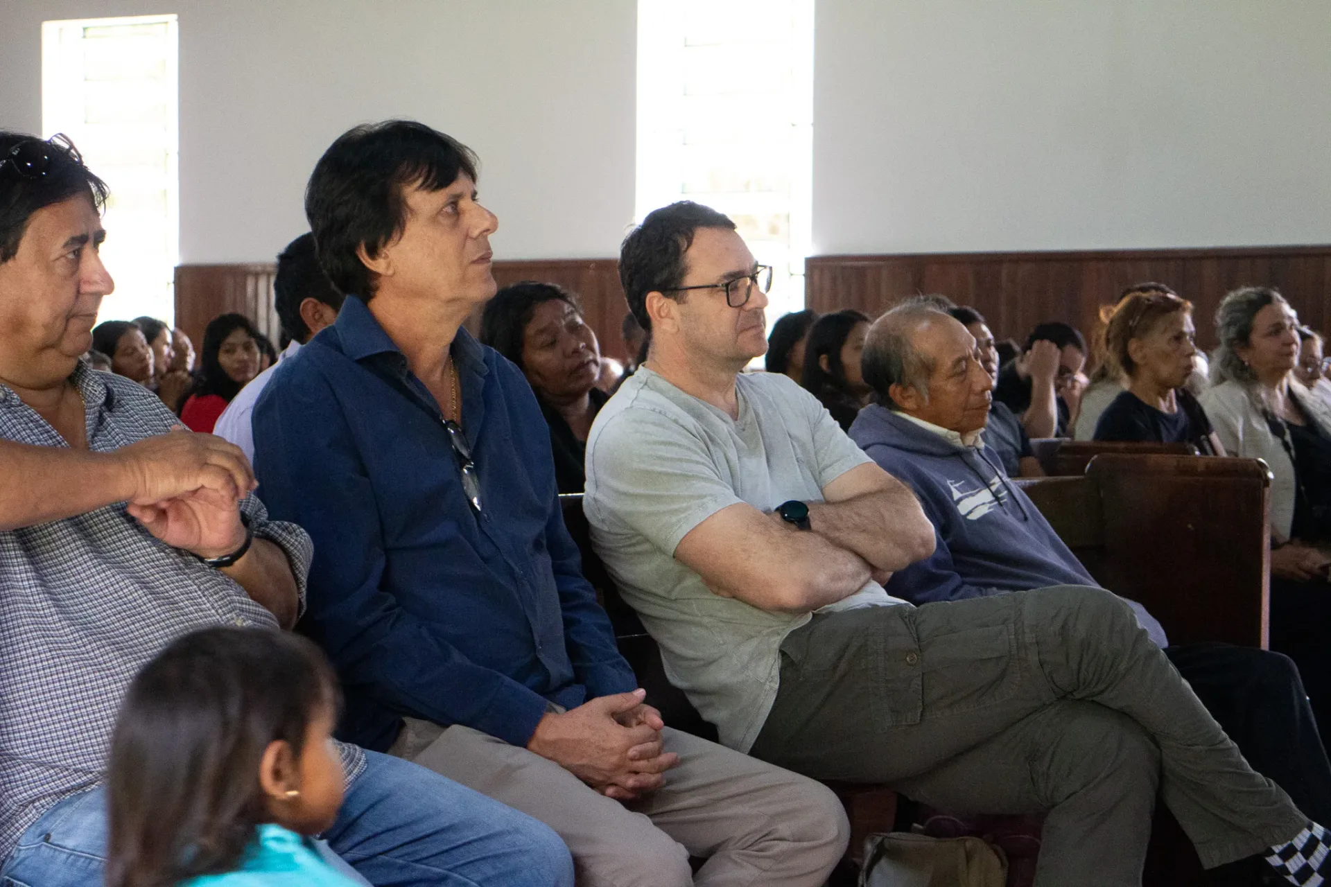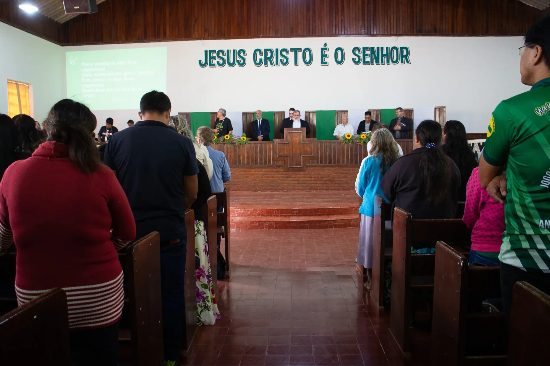 Na parte da tarde, retornamos ao templo, onde cada uma das congregações indígenas teve a oportunidade de apresentar um hino do hinário “Japorahei joa”. Em seguida, testemunhamos um momento de batismos. O Reverendo Simei Mariano ministrou a palavra, e o Reverendo Beijamim encerrou com uma oração e impetrando a bênção.