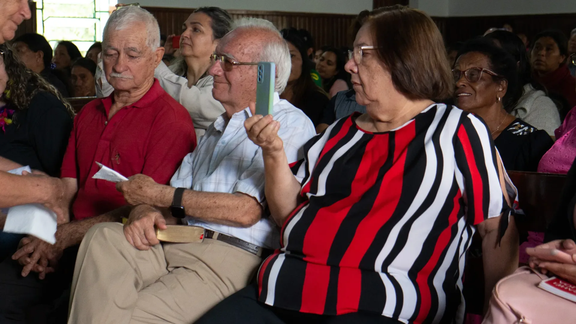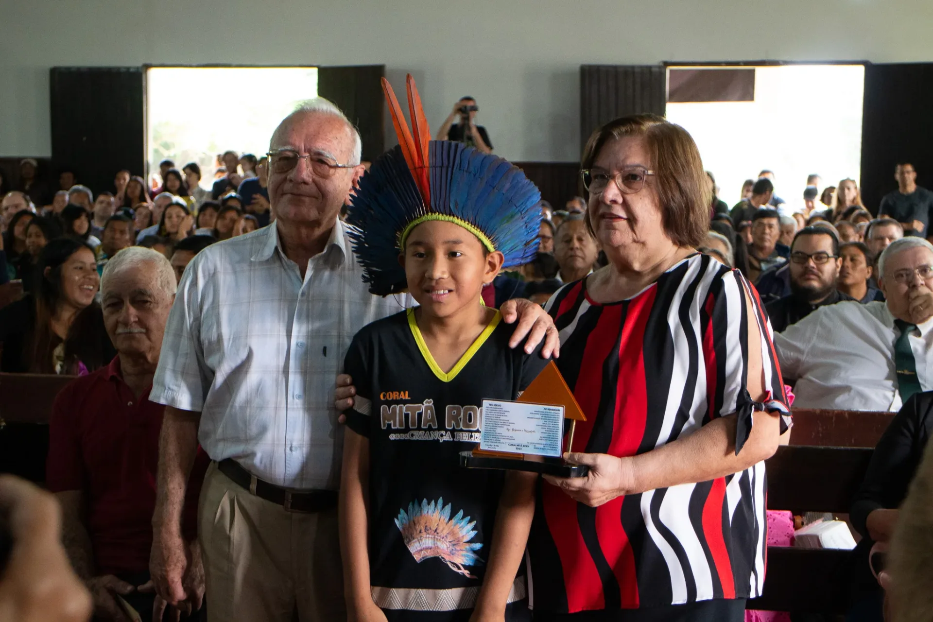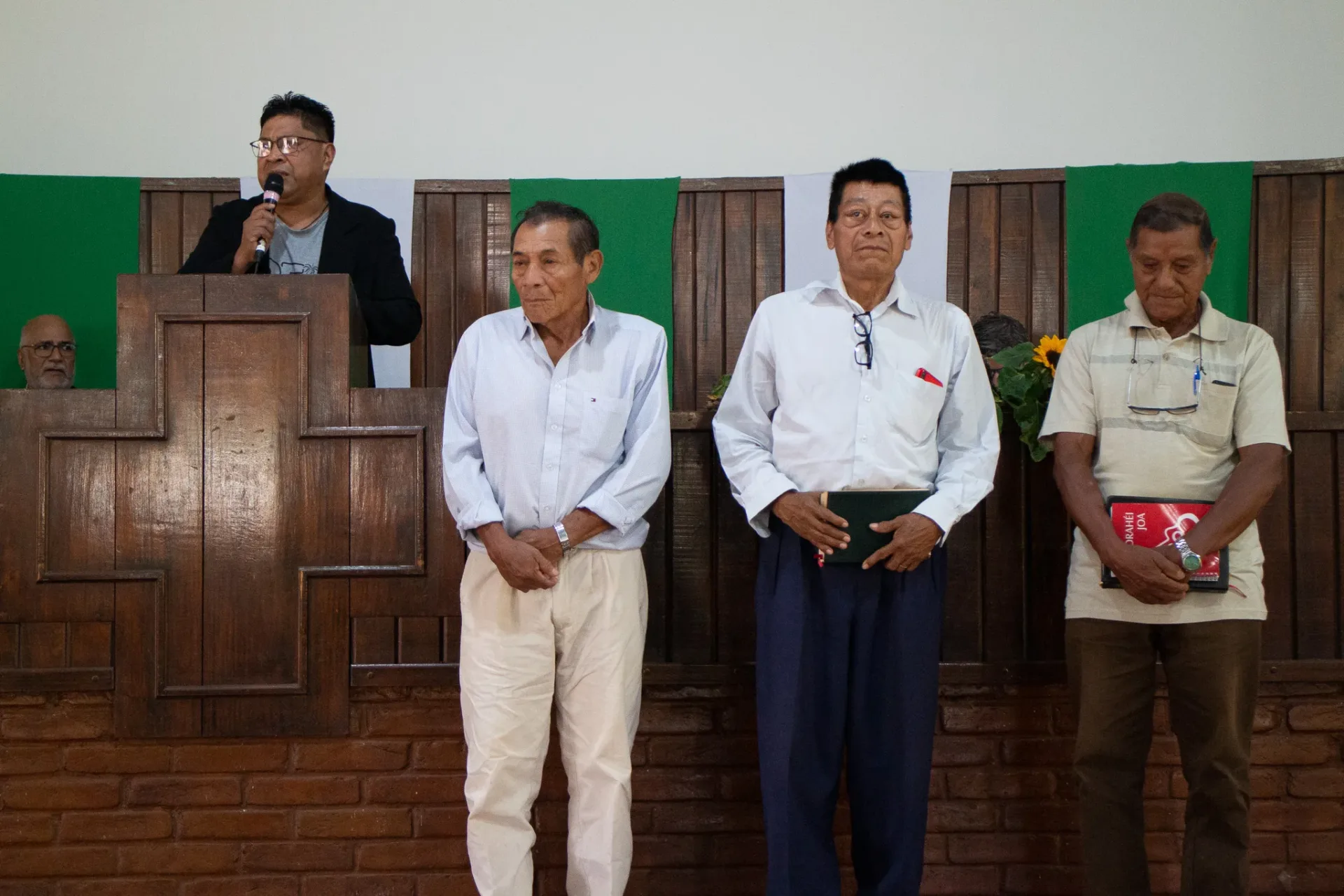 Ao término do culto, dedicamos um momento especial para homenagear o Rev. Beijamim Benedito Bernardes e sua esposa Margarida, que encerraram um período de 38 anos à frente da Missão. Também prestamos homenagem ao Presb. Enoque Bernardes, que dedicou 30 anos de sua vida como construtor de várias igrejas nas aldeias e edifícios na Sede, junto com sua esposa Gracinha.